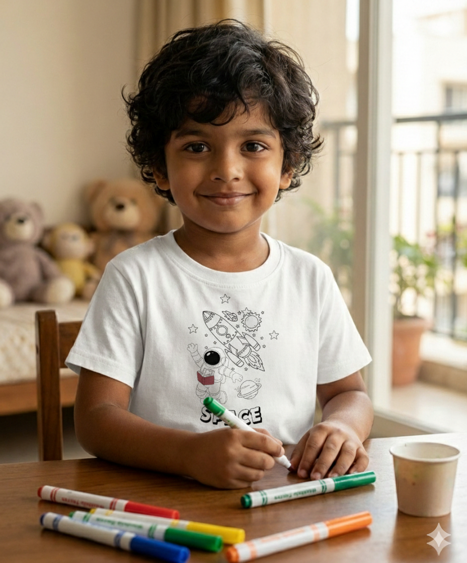 Unleash Creativity with Our Colour-In SpaceT-Shirt